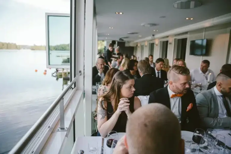 Lokalen passar till fest, konferens, kurs och konsert. Festvåningen är nyrenoverad, luftig och ljus med fönster i två väderstreck. Ett rum med bar, en entréhall ingår i hyran. Entrén är placerad nästan direkt på kajen, och där har ni en egen terrass med möjlighet till mingel, utsikten över vattnet och Strandvägen på andra sidan är oslagbar!